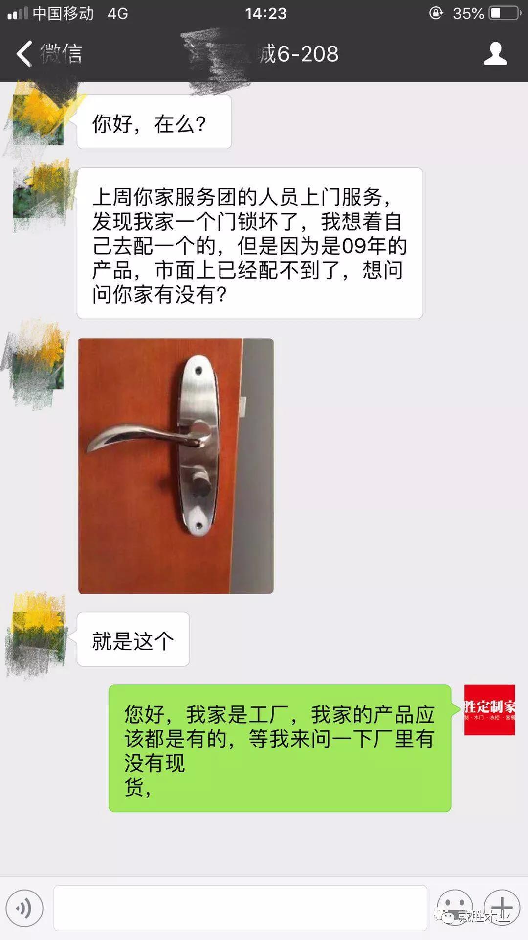 最近,戴勝客服中心接到了一個(gè)特殊的服務(wù)需求,該客戶在2009年選購(gòu)了5套戴勝木門產(chǎn)品,使用了10年,在一次“戴勝匠心服務(wù)團(tuán)”的日常維護(hù)中發(fā)現(xiàn),其中一個(gè)門鎖壞了,多年前的產(chǎn)品,市面上已經(jīng)配不到了,于是客戶求助戴勝。