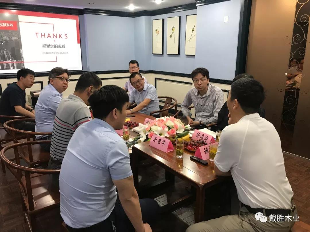 2019年5月22日,臺升國際東莞工廠總經(jīng)理張漢屹、嘉善工廠總經(jīng)理林怡宏總經(jīng)理蒞臨戴勝定制家居參觀指導(dǎo)。戴勝定制家居董事長姚國培攜營銷中心、設(shè)計(jì)中心等相關(guān)部門負(fù)責(zé)人熱情接待。