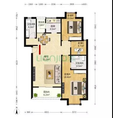 有人問,什么樣的戶型適合做這樣的隔斷,我從鏈家找了張戶型圖,作為參考: