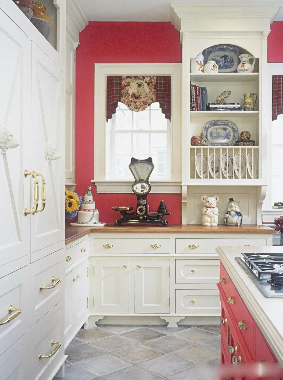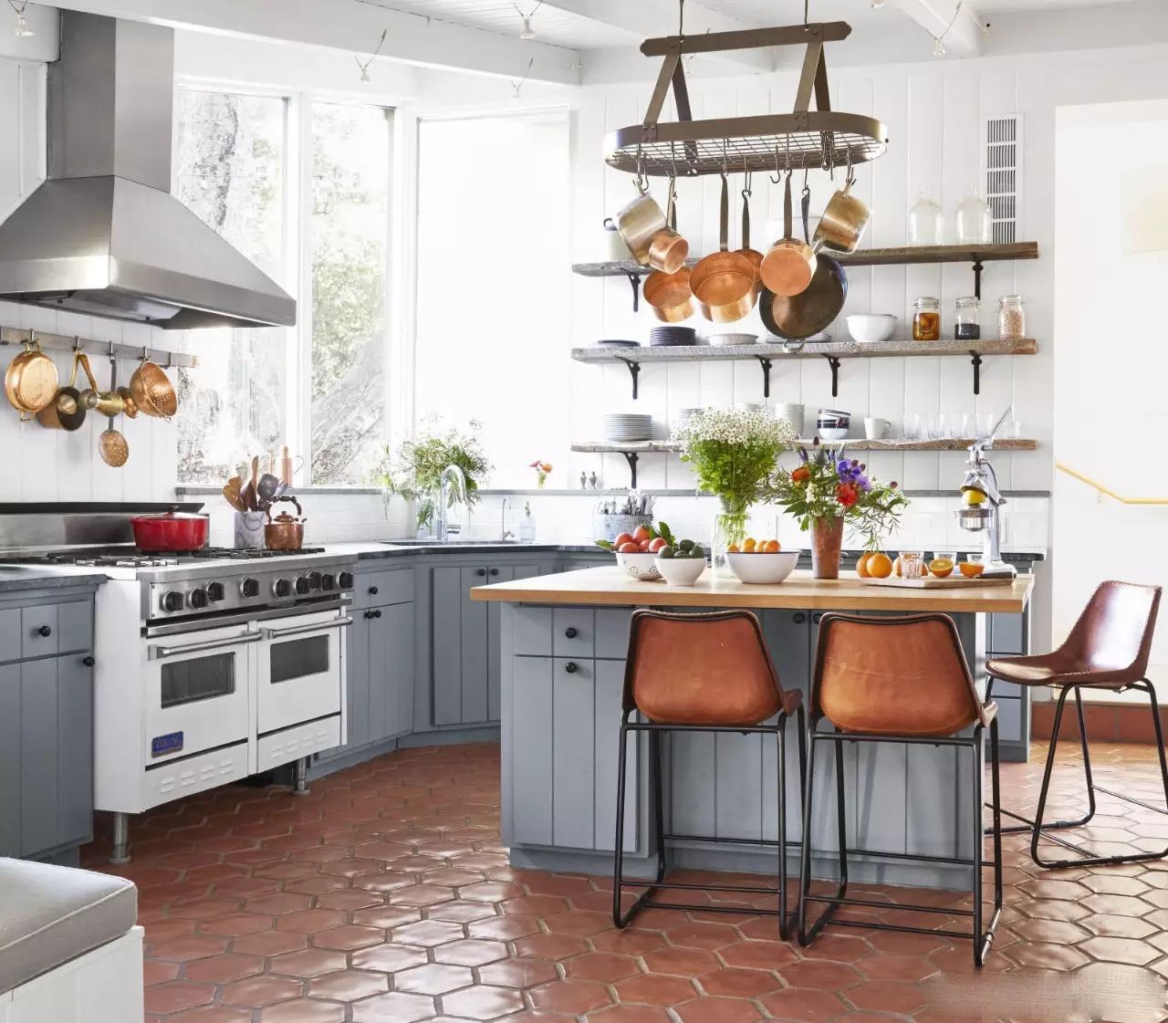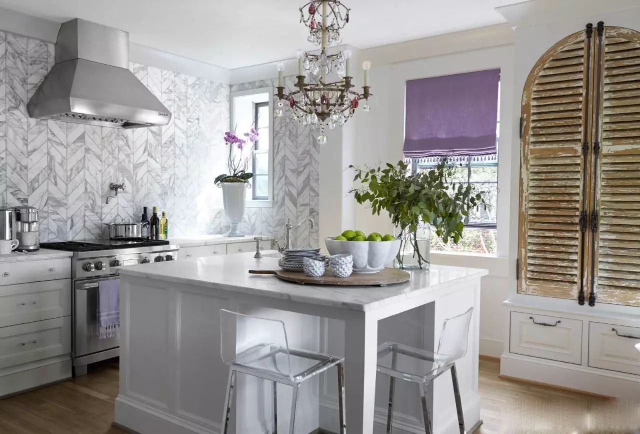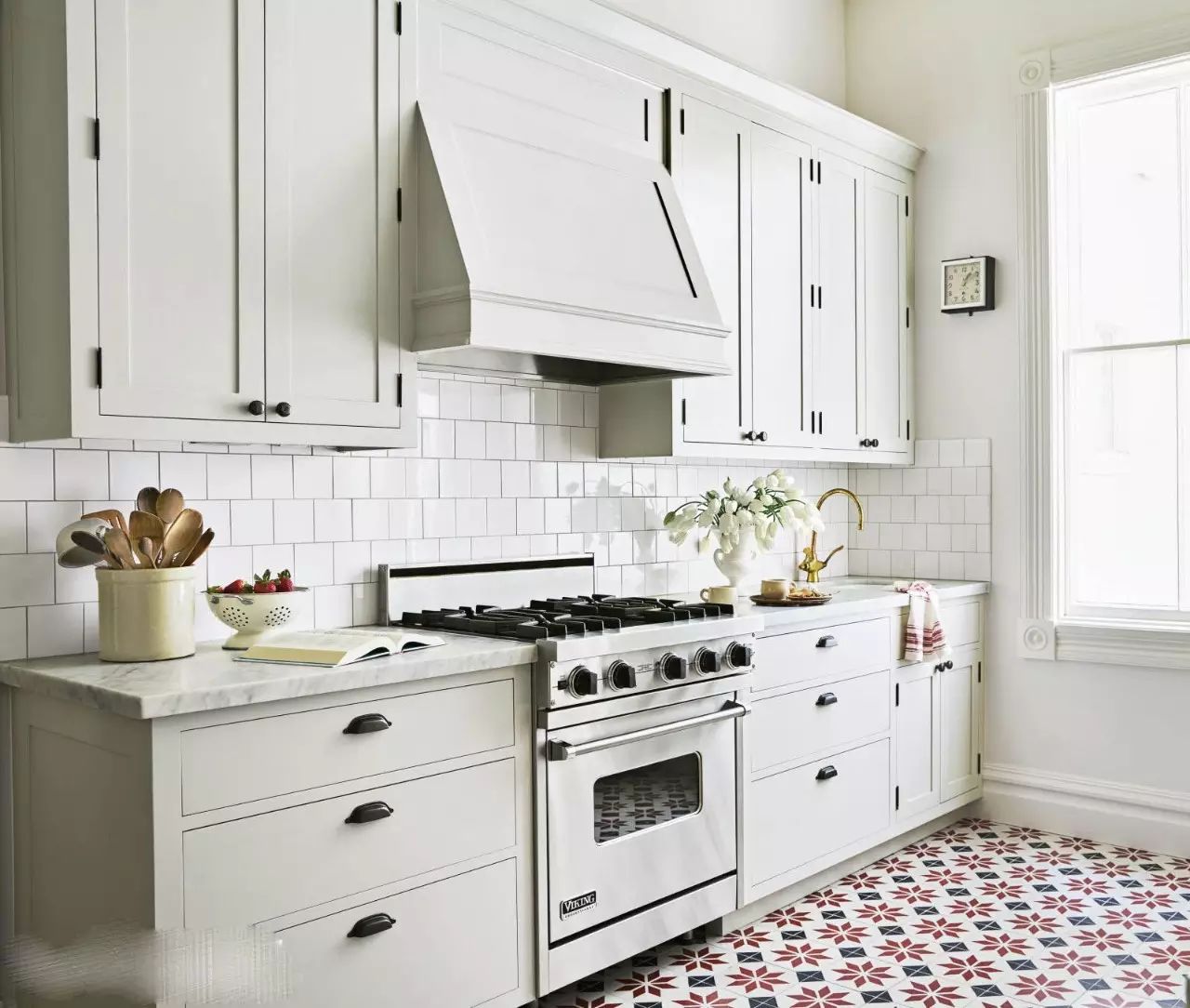 ?白色的廚房搭配紅藍(lán)的地磚,一下子鮮活起來,所以說顏色搭配是非常重要噠~
