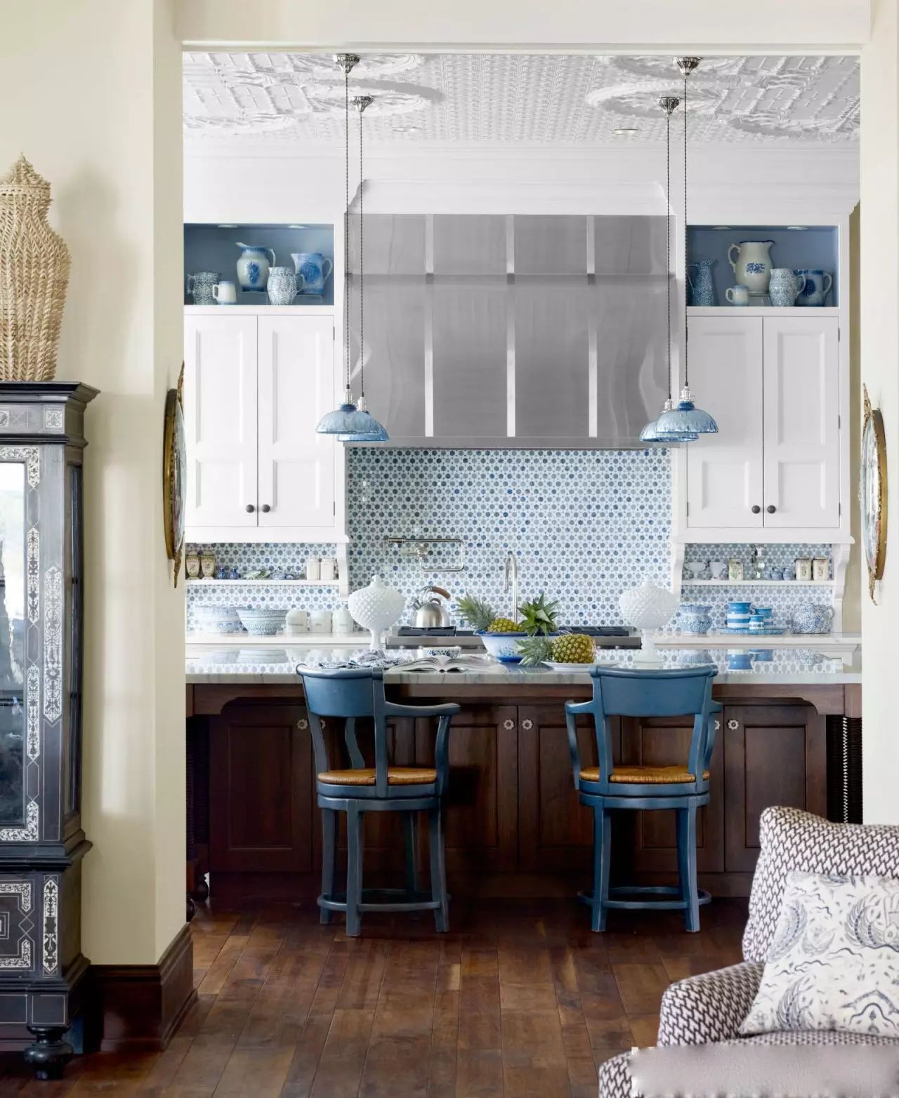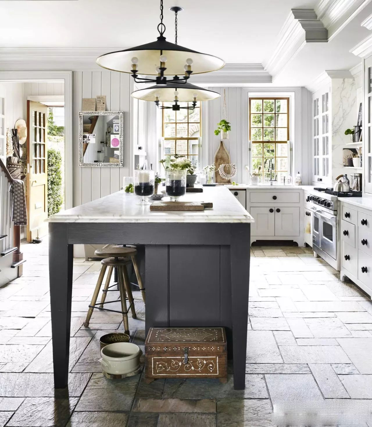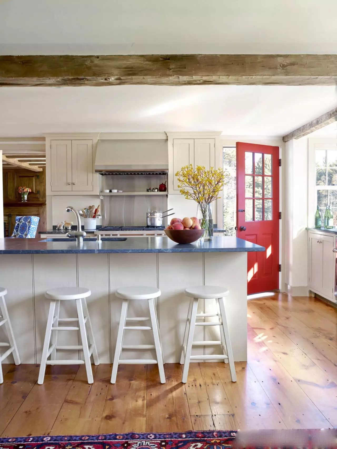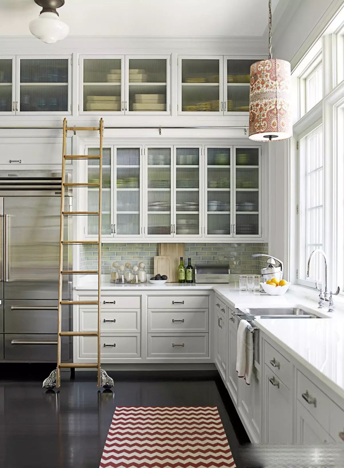 ?白色的廚房搭配紅藍(lán)的地磚,一下子鮮活起來,所以說顏色搭配是非常重要噠~