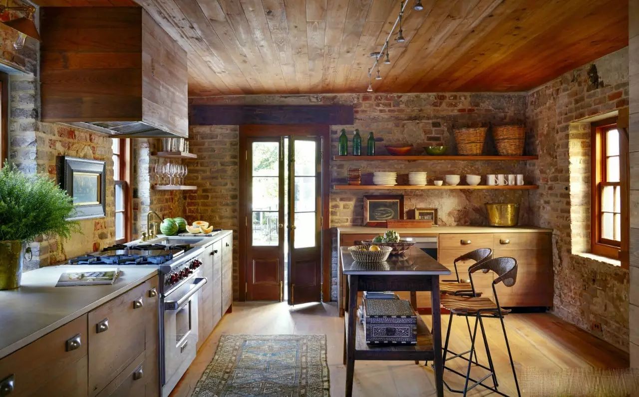 實木和磚塊的組合,像是會出現(xiàn)在童話森林里的廚房小屋。