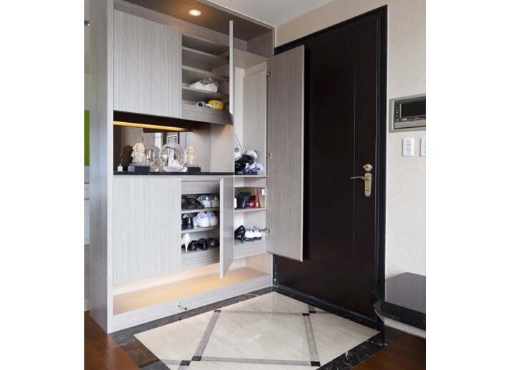 這樣設(shè)計(jì)鞋柜很方便收納,而且還有裝飾效果,鞋柜的材質(zhì)顏色要與家里的裝修家具等搭配協(xié)調(diào),如果都是零散的買家具,無(wú)論從風(fēng)格還是顏色或者是尺寸都很難統(tǒng)一協(xié)調(diào),這就是為什么要做定制的原因。
