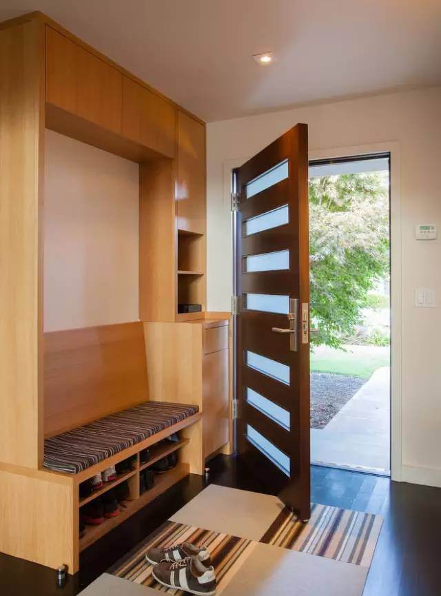 看完這些是不是覺得缺少一點(diǎn)點(diǎn)什么呢?沒錯(cuò),沒有坐的地方換鞋!下面這些鞋柜設(shè)計(jì)可以借鑒哦。