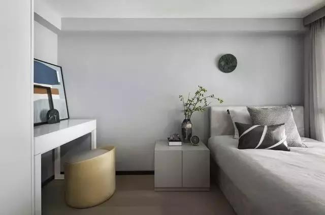 臥室延續(xù)開放式書房的設(shè)計(jì),安靜的灰調(diào)與暖色的木制地板造成視覺上溫潤(rùn)的效果,營(yíng)造空間樸實(shí)悠閑的場(chǎng)域精神。一點(diǎn)點(diǎn)鵝黃色點(diǎn)綴,簡(jiǎn)單卻不單調(diào)的顏色搭配,過(guò)濾了原本飽和度的強(qiáng)烈和濃重,顯得更加柔和優(yōu)雅。