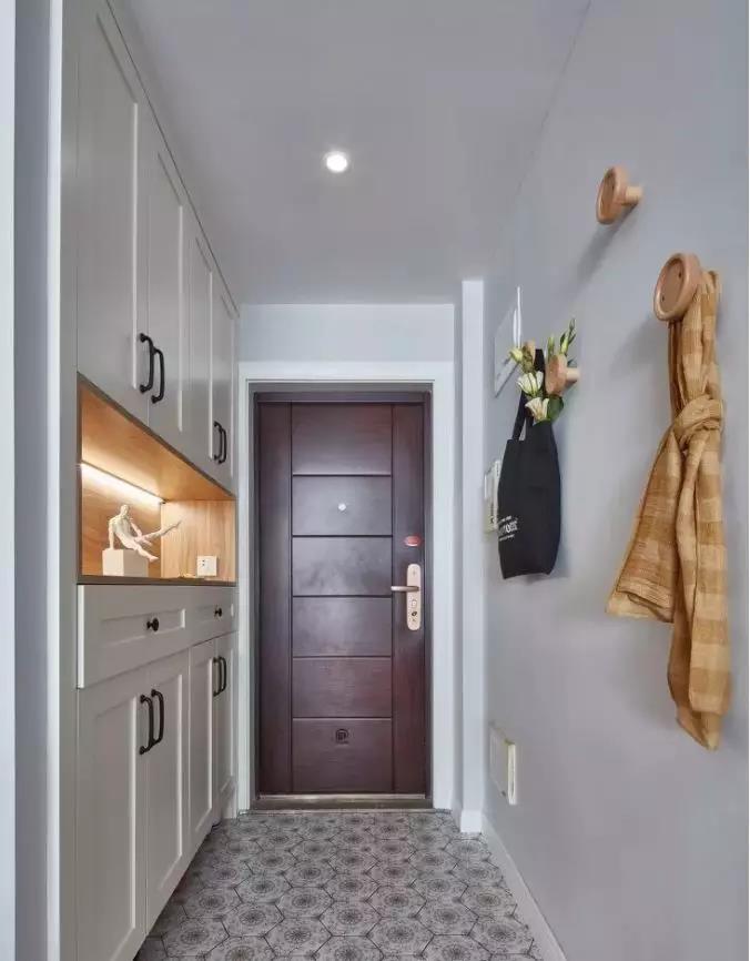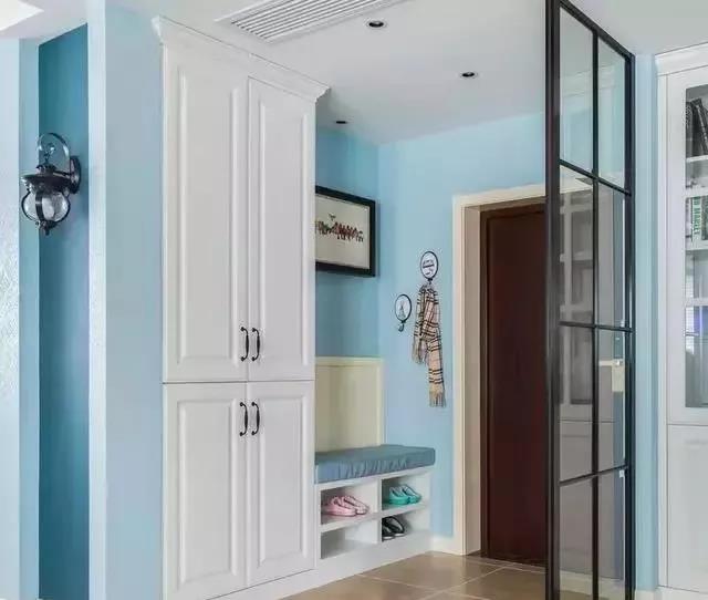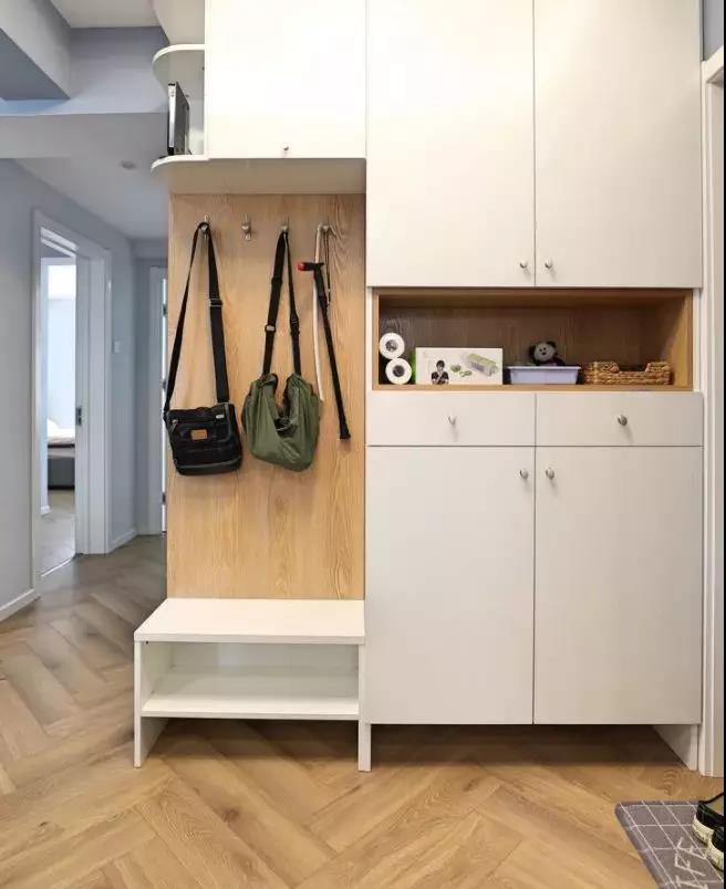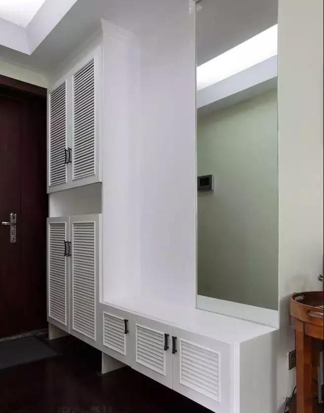 3、鞋柜一般都是裝在進(jìn)門(mén)處,需要使用方便,又不影響美觀,內(nèi)嵌式鞋柜與墻面保持一致,充分利用空間。