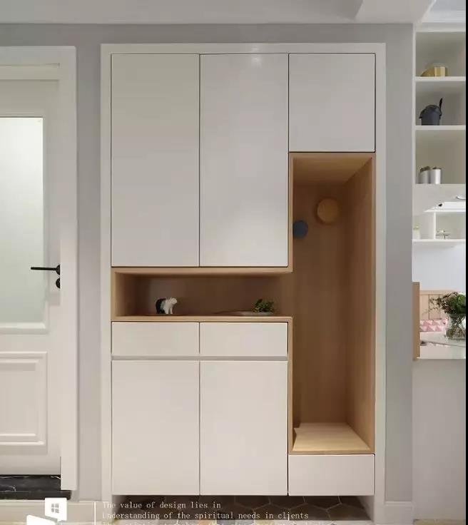 5、鞋柜底部要留空,高度留個(gè)15-20厘米,從外面回來(lái),直接就能方便的把鞋子放進(jìn)去,不用堆在門(mén)口那么難看。
