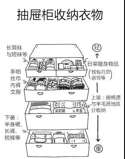 解決了衣柜的合理設(shè)計(jì),小勝無私貢獻(xiàn)出珍藏的一套萌萌噠衣物收納手繪圖,上衣褲子裙子怎么折疊,襪子怎么卷,內(nèi)衣怎么收納,尤其是家里衣櫥沒有那么多可以懸掛的空間來說,聽起來就感覺棒棒噠是不是?趕緊戳圖收藏吧!