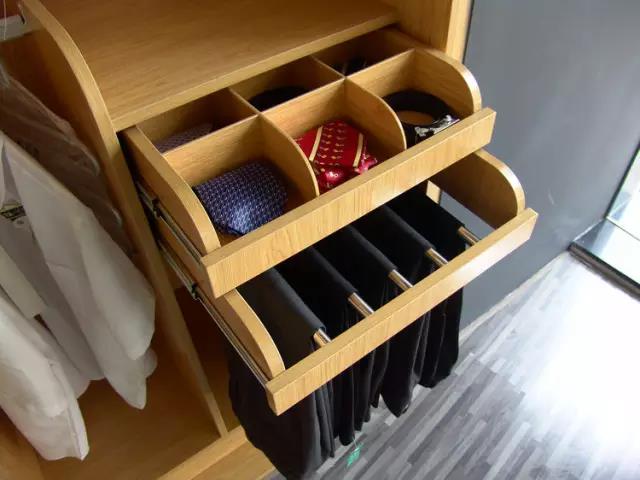 格子架的高度在160—200MM之間。這個(gè)區(qū)域主要用于存放領(lǐng)帶,由于里面有固定領(lǐng)帶的夾子,因此不需要太高的空間。